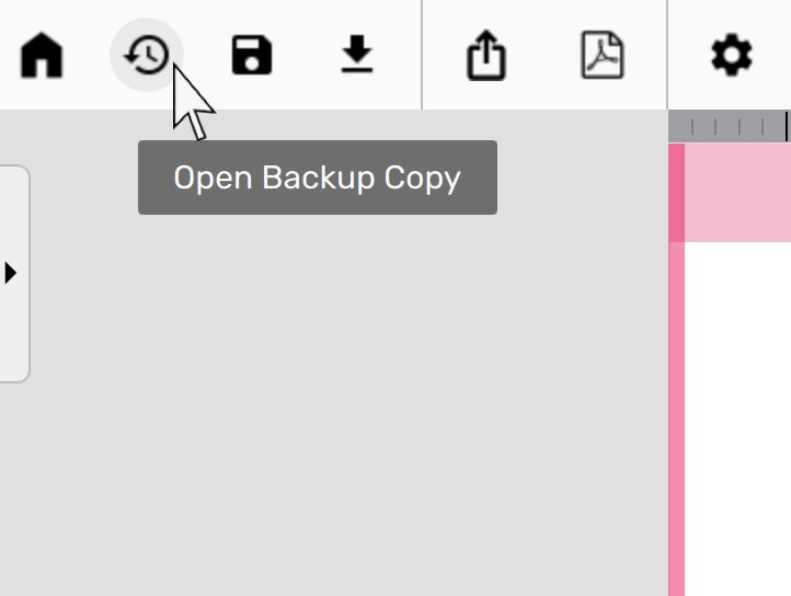 Whenver you open a file the toolbar shows an icon for loading a backup copy of that file.