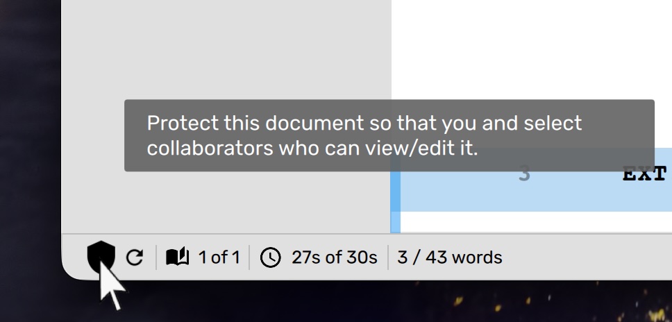 | Protect Document | Allow edits on this document by only a few people, more about this in the Shield section. |