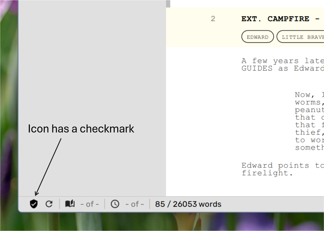 Click on the shield icon on the bottom left corner of the screenplay editor.