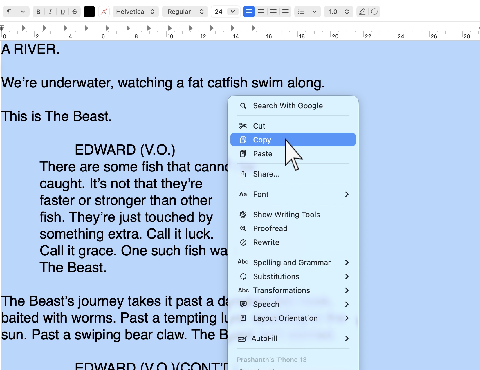 You can copy a screenplay in plain text or Fountain format to the clipboard ...