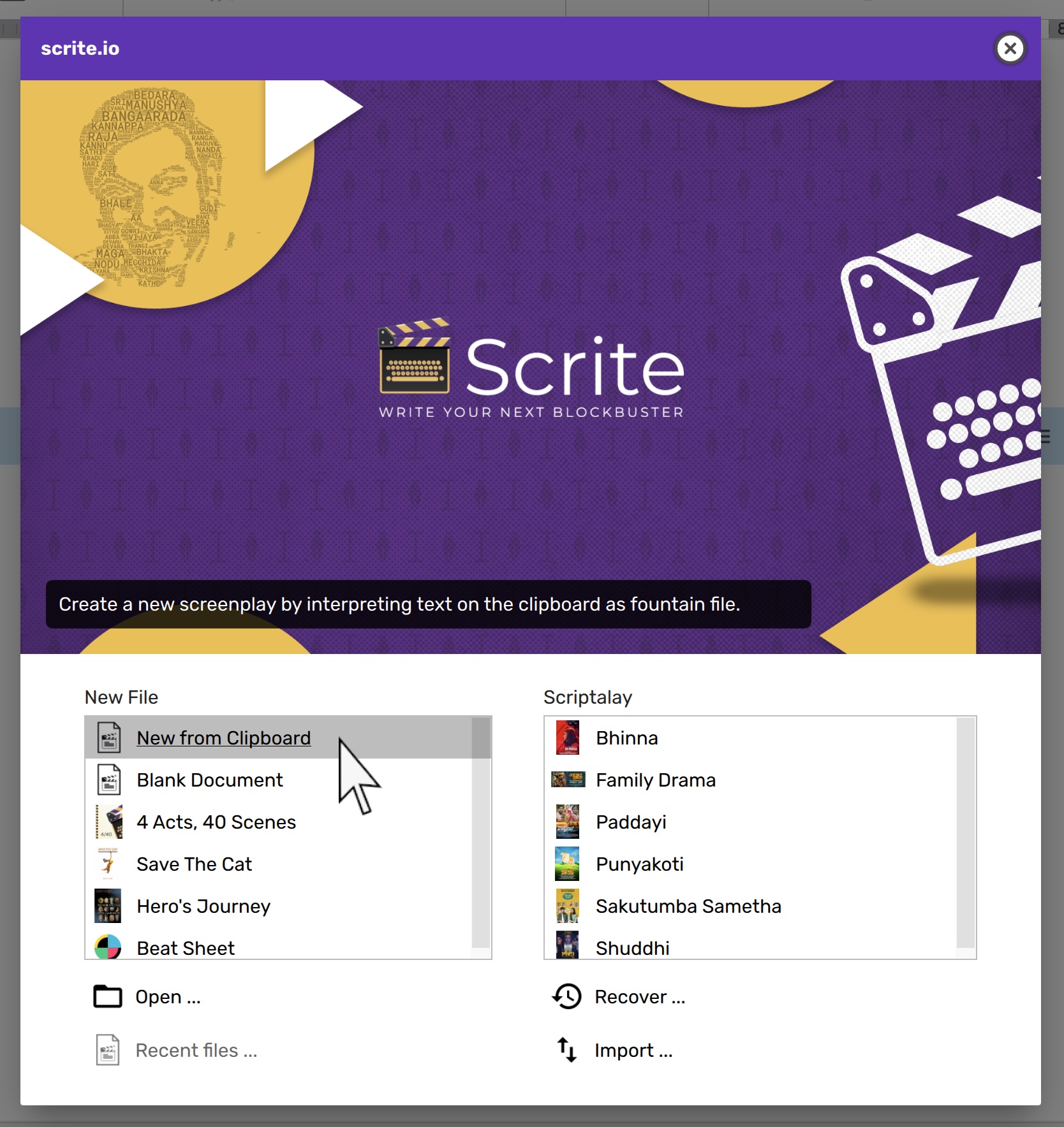 ... to import contents of the clipboard as a formatted screenplay.