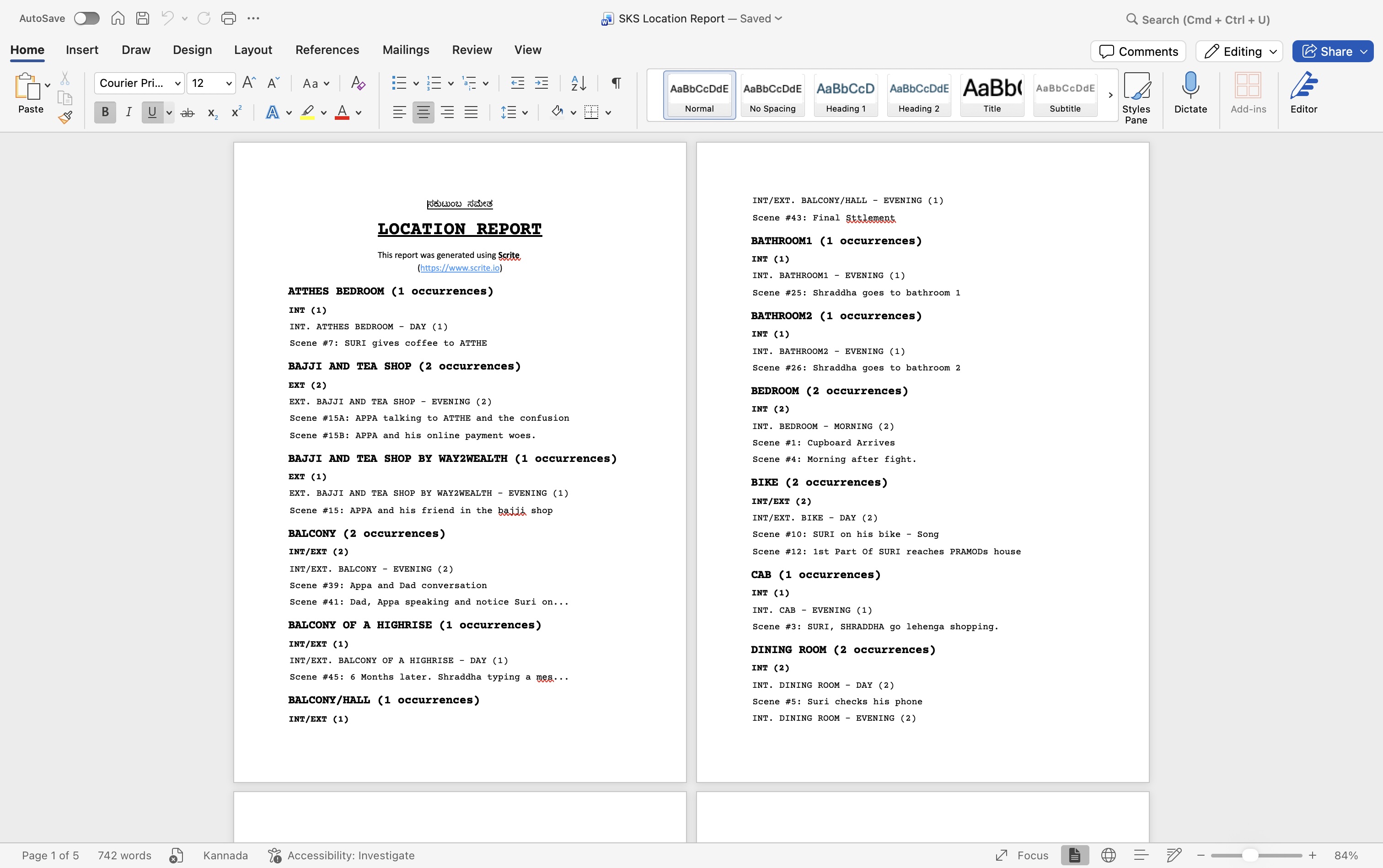 - Location Report – an extract of all locations used and the scenes in which they appear.