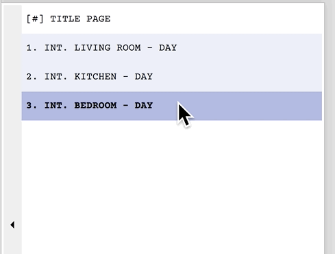 Using the Scene List Panel you can get a quick overview of all scenes in your screenplay and even jump to a scene.