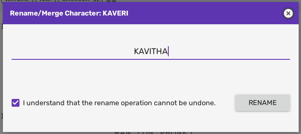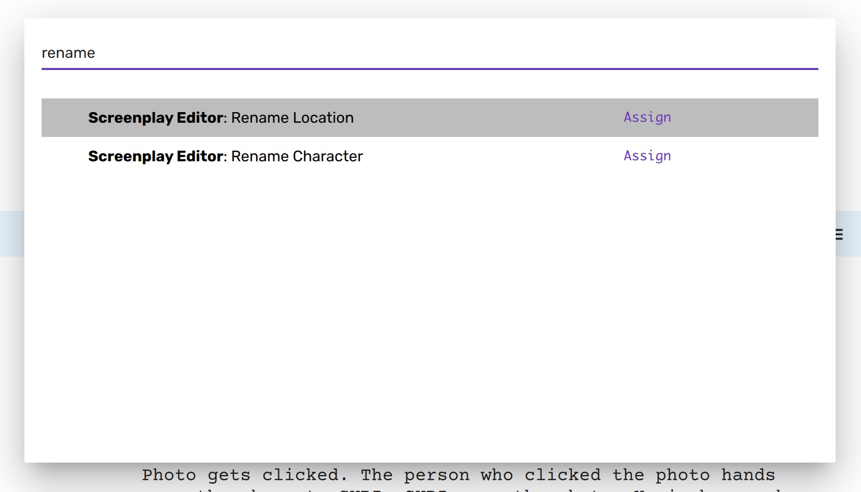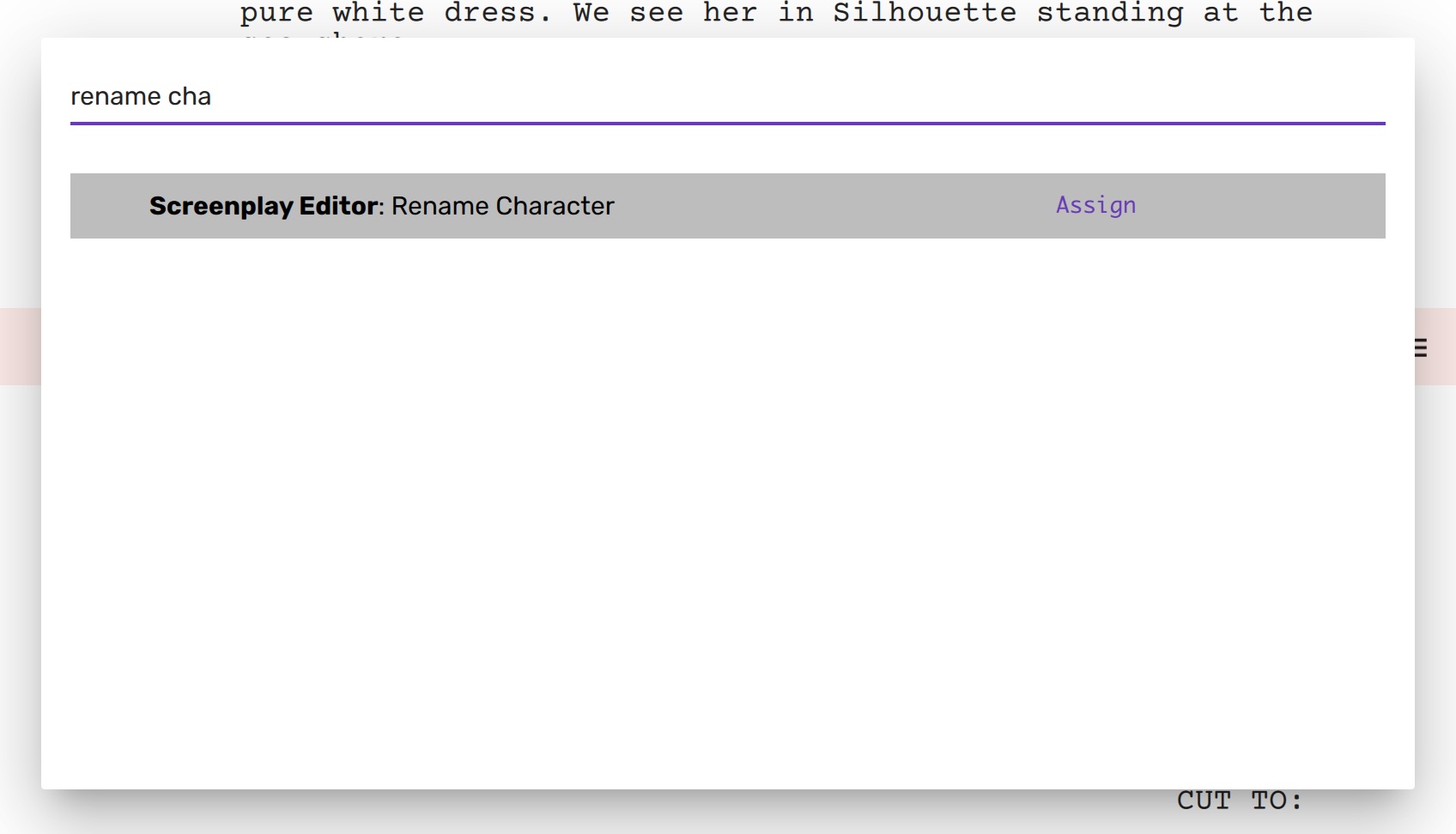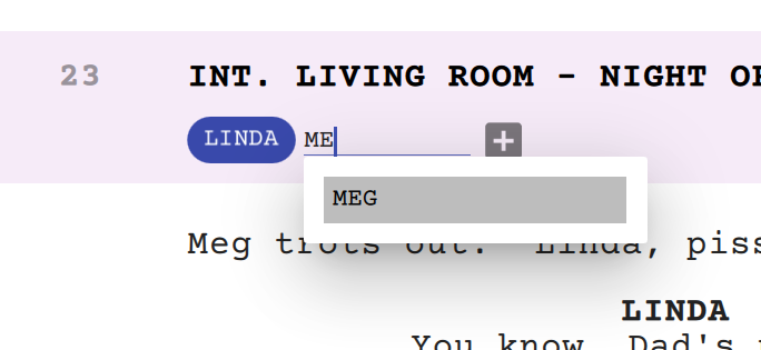 (Windows/Linux) or ⌘+Shift+Return (macOS). Dialogue character lists are split