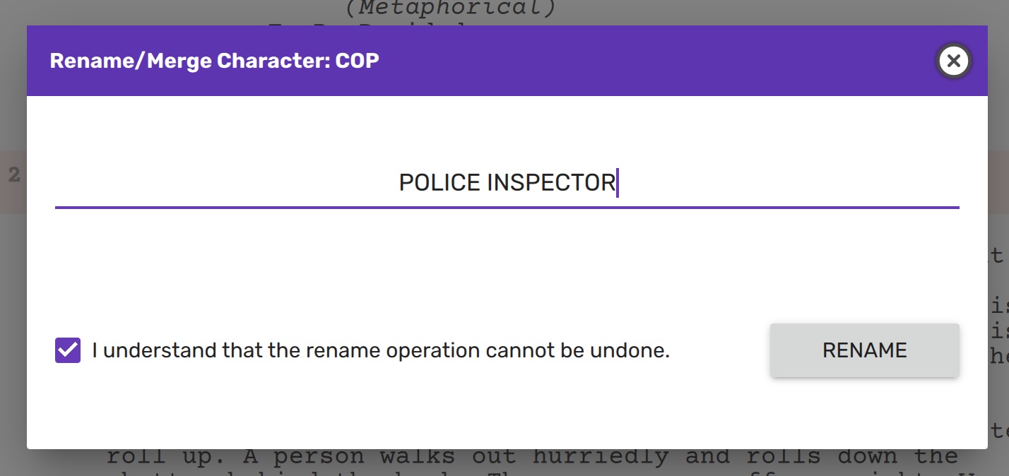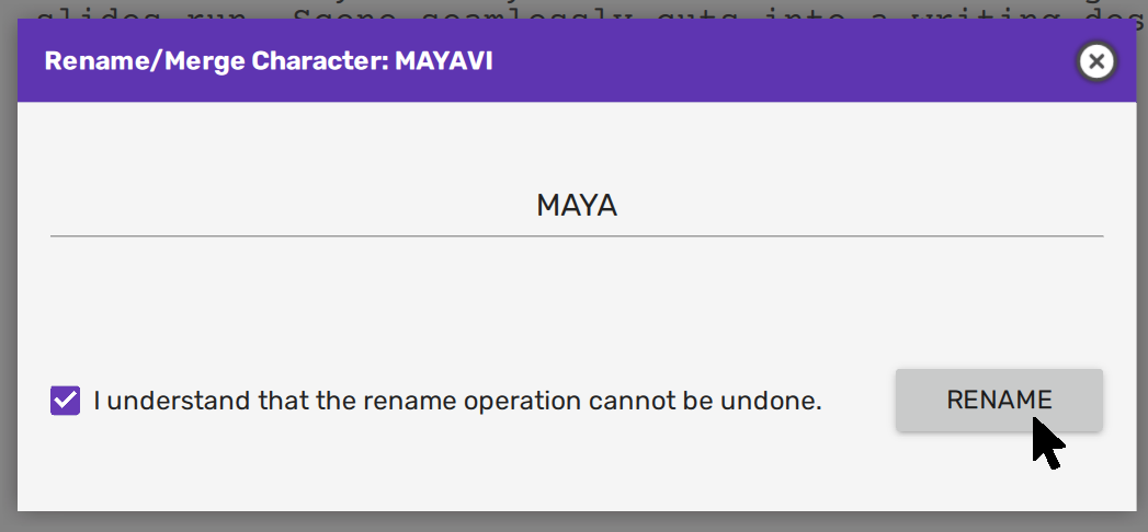 Close the dialog and Scrite applies your formatting rules across all scenes.