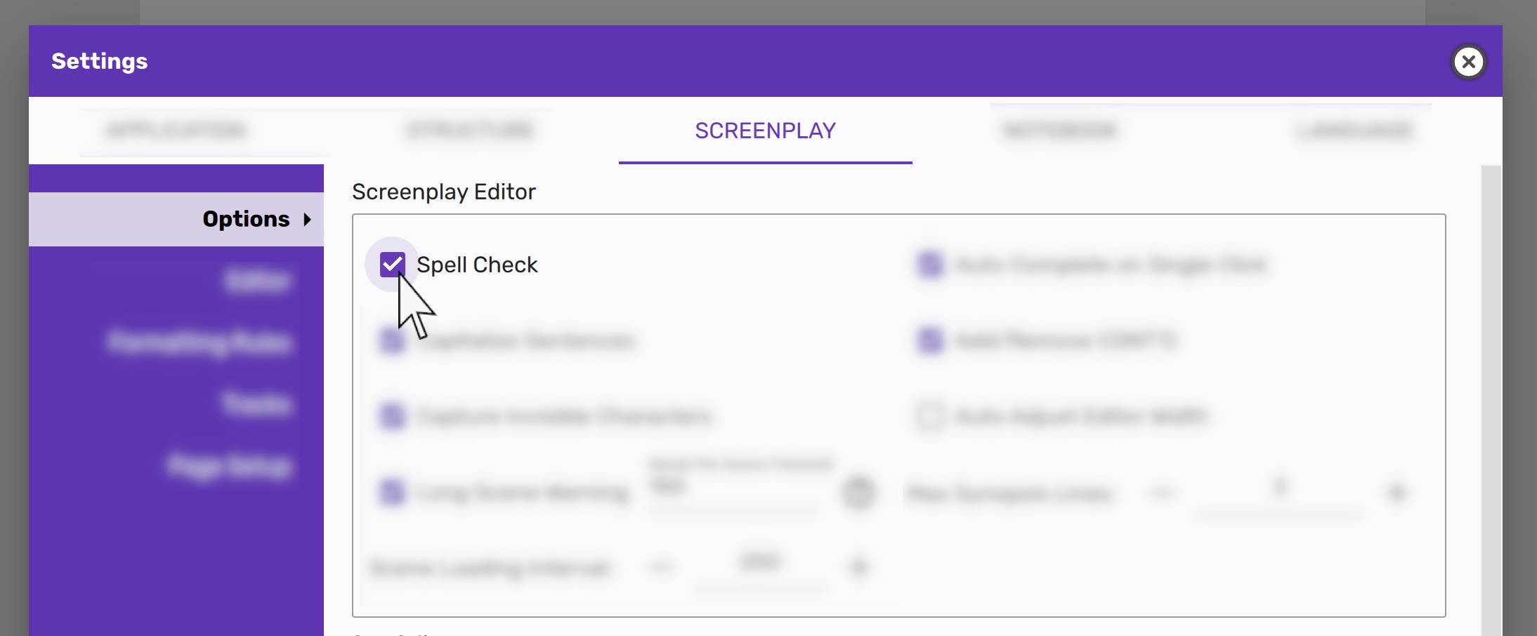 You can enable/disable spell-check in Settings > Screenplay > Options page.