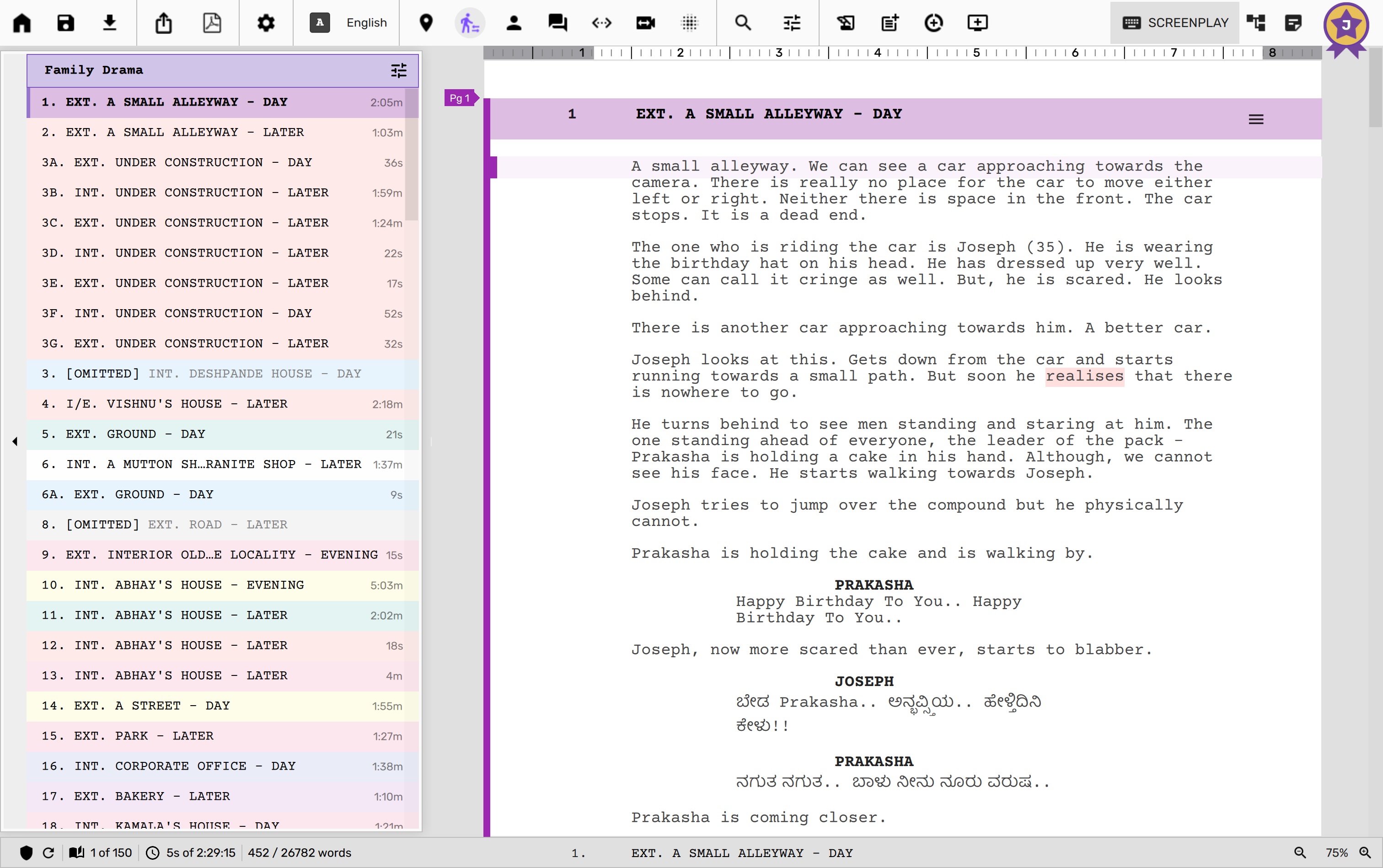 You can switch between various tabs, generate reports, export to other formats, and in general explore all features of Scrite.